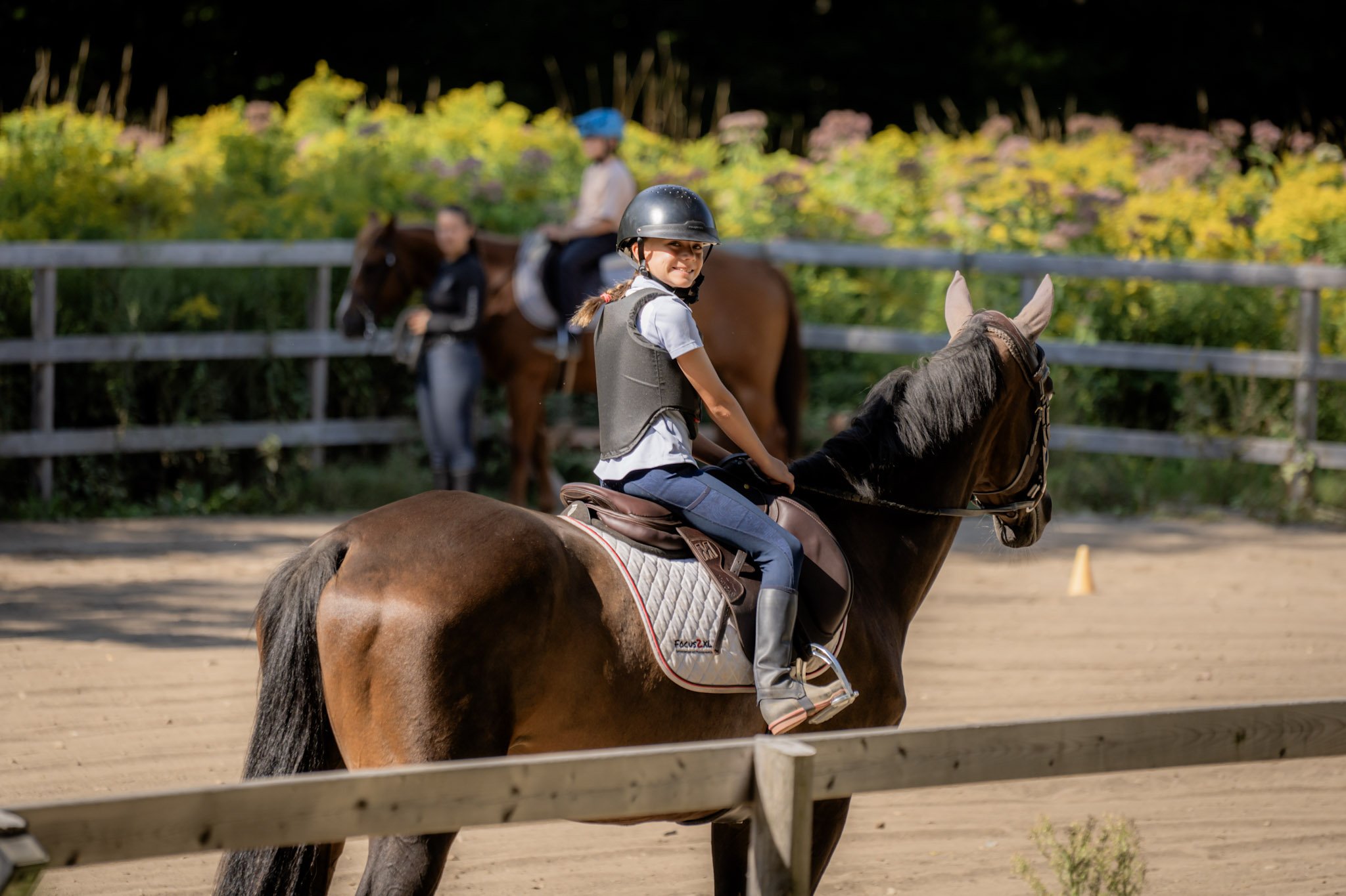 Voici les 3 différentes formules pour nos cours d'équitation. Tous les cours sont donnés par Fabienne, instructeur qualifiée depuis 12 ans en selle anglaise. Les cours ont lieu de mai à novembre dans notre manège extérieur. Disponibles à l’unité ou en session de 6 cours contactez moi pour plus d’informations.